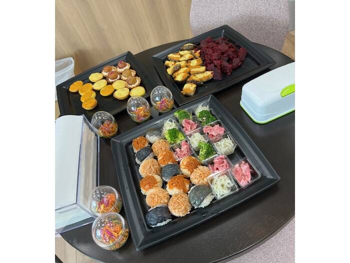 見た目が華やかで色とりどりだったのでとてもよかったです。周りの人からもおしゃれや美味しいなど言ってもらえて、大満足です。量も、足りないように主食が入っているものを選んだのでおにぎりとバーガーが入っていてみんな満足していました。わたしはカラフルな前菜とケールのサラダがとても好きでした。