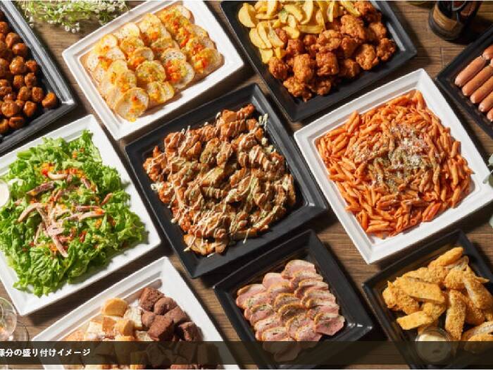 今回、40人のパーティー用にボリューミーデリプラン+飲み放題を利用させていただきました。