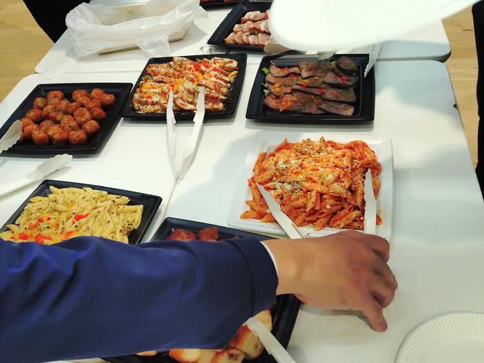 ただ、質に関しては(ケータリングなのでしょうがない部分もあるが)冷めても美味しいものとそうでないものがあるので、冷めている前提のメニューと、メニューの中でもそれぞれの品目で量を調整していても良さそうだと思った。 -