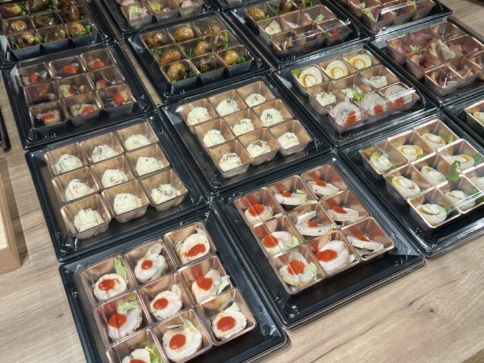【取り分け不要!】全てカップインされているため手に取ってすぐに召し上がれます。野菜からお肉までしっかり取れて、バランス◎おつまみ程度~しっかり食べたい時など多彩なシーンを考えて準備しております。