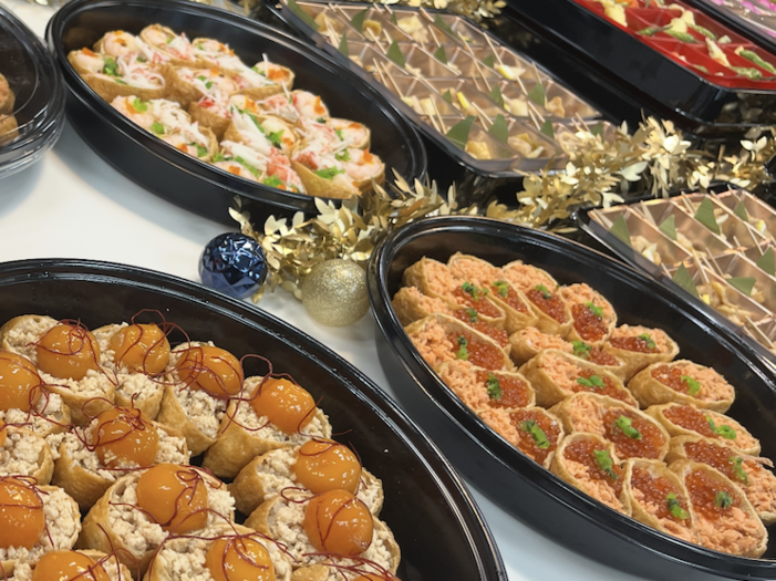 専門家たちの競演による特製和食オードブル。それぞれの強みを活かしたお料理でおつまみからお食事まで充実のラインナップ。軽やかさと満足感を兼ね備え、幅広い世代に喜ばれる内容です。ちょっとしたお食事会から特別なシーンまでぴったりの、万人受けする和食オードブルは幹事さまから重宝されること間違いなしです。