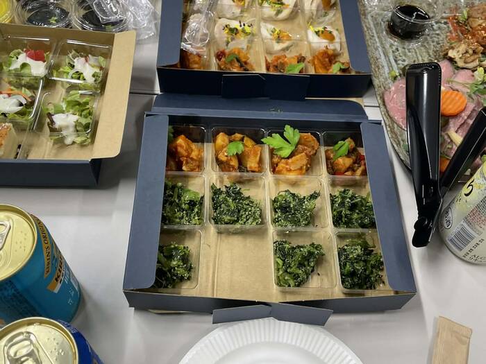 これまではピザ、寿司、揚げ物といった定番メニューが多く、内容がマンネリ化していたため、同僚の勧めで今回初めてこちらにお願いすることに。事前に相談した女性社員からも「楽しみ!」と非常に好評で、当日を心待ちにしていました。
