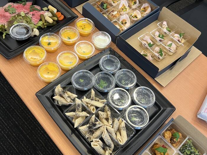高級なBARで開催したビジネス交流会で、それぞれおひとり分をおしゃれな器に並べてサーブしました。