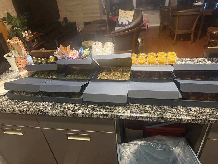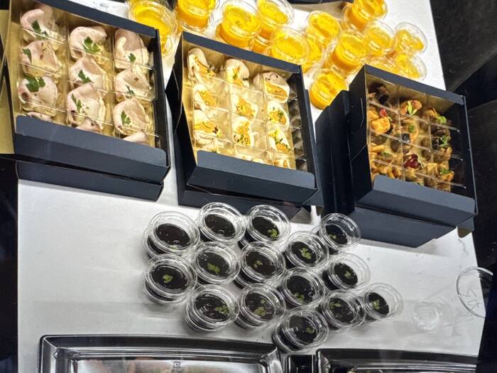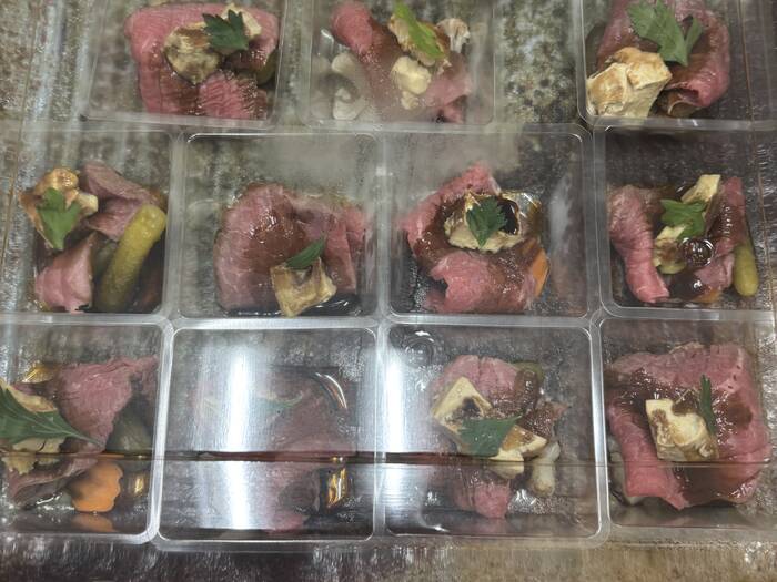 立食形式の懇親会でしたが、小分けされていたので食べやすかったです。味もおいしく満足でした。スープが残ってしまったので、すべて箸で食べれるメニューになるとありがたいです。